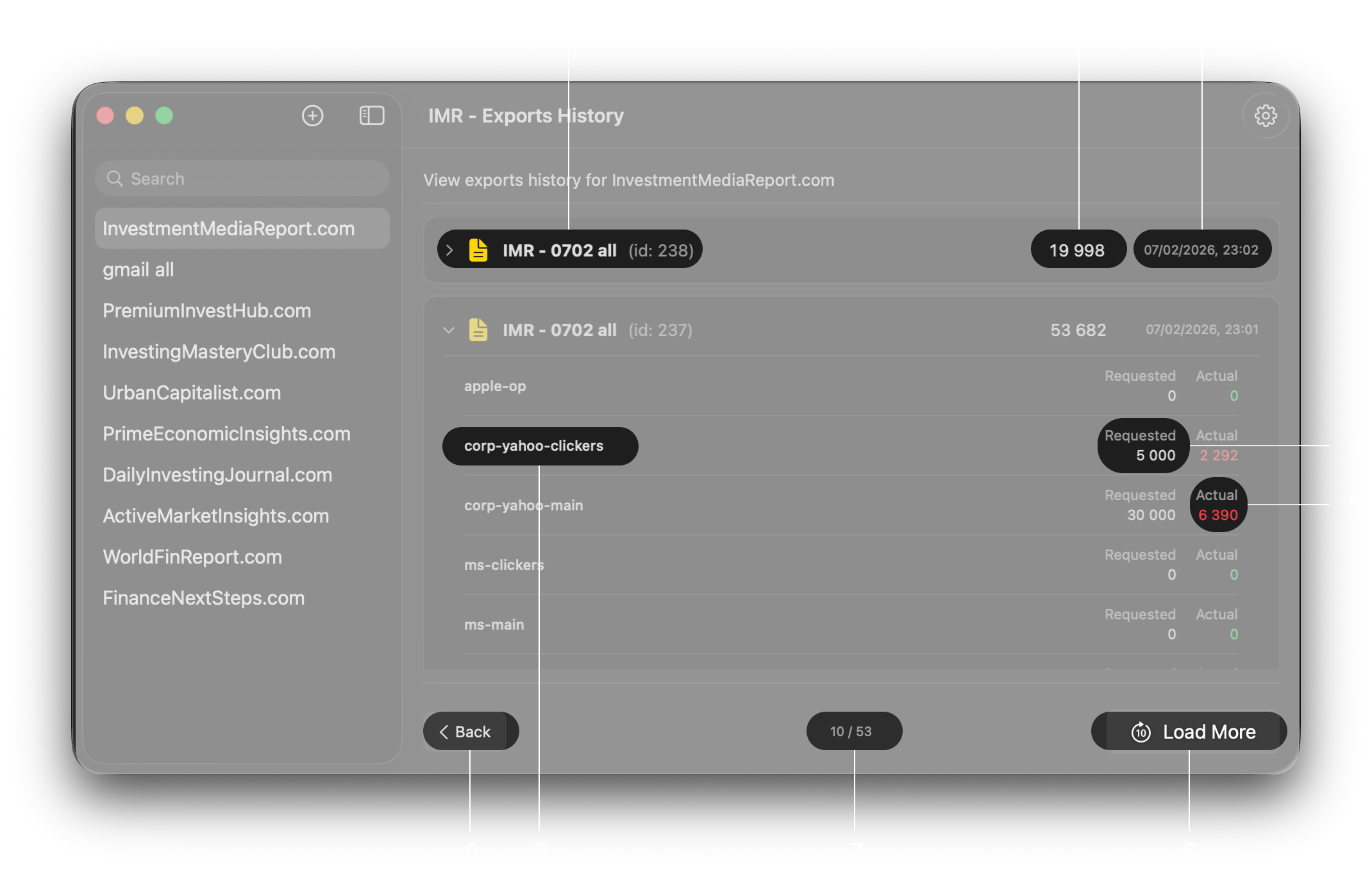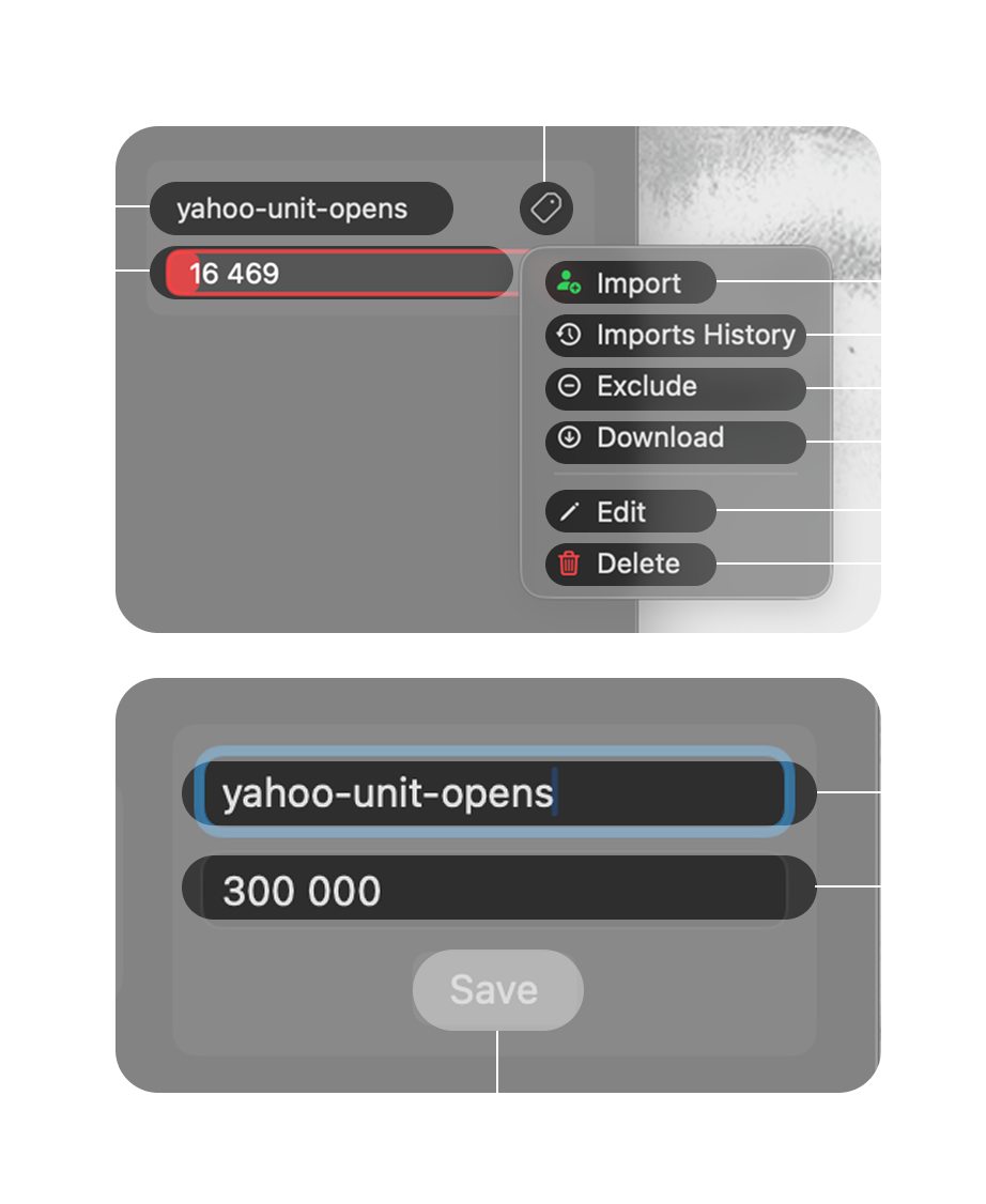 Create customizable exports by choosing exactly how many emails from any tag you want. View detailed exports history to always know when, how many, and which emails you used