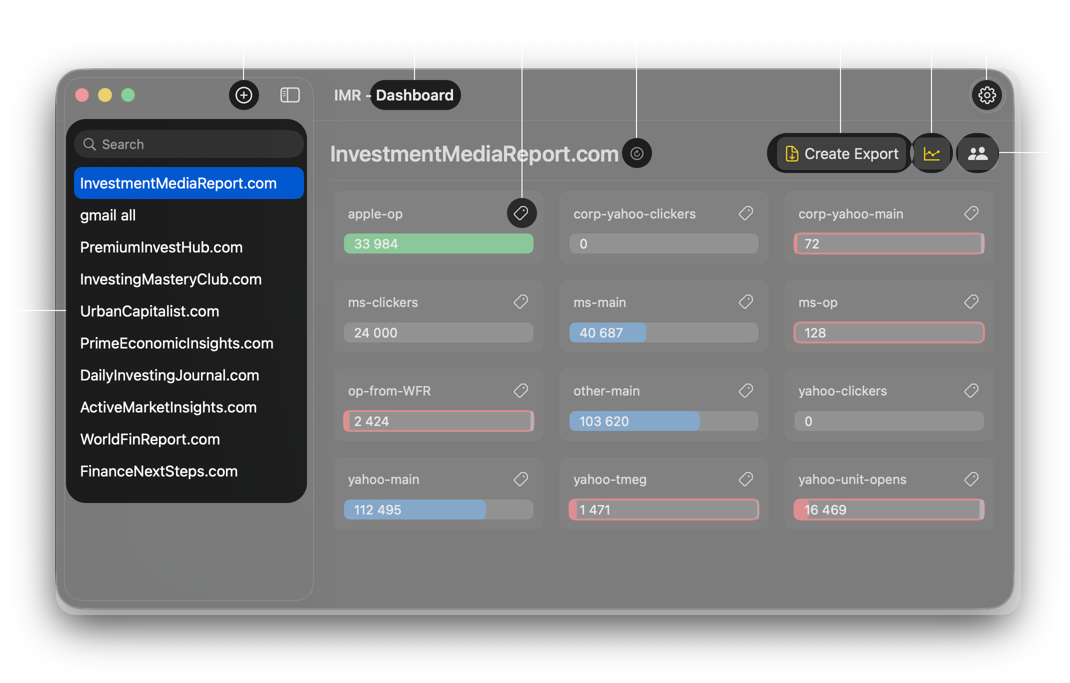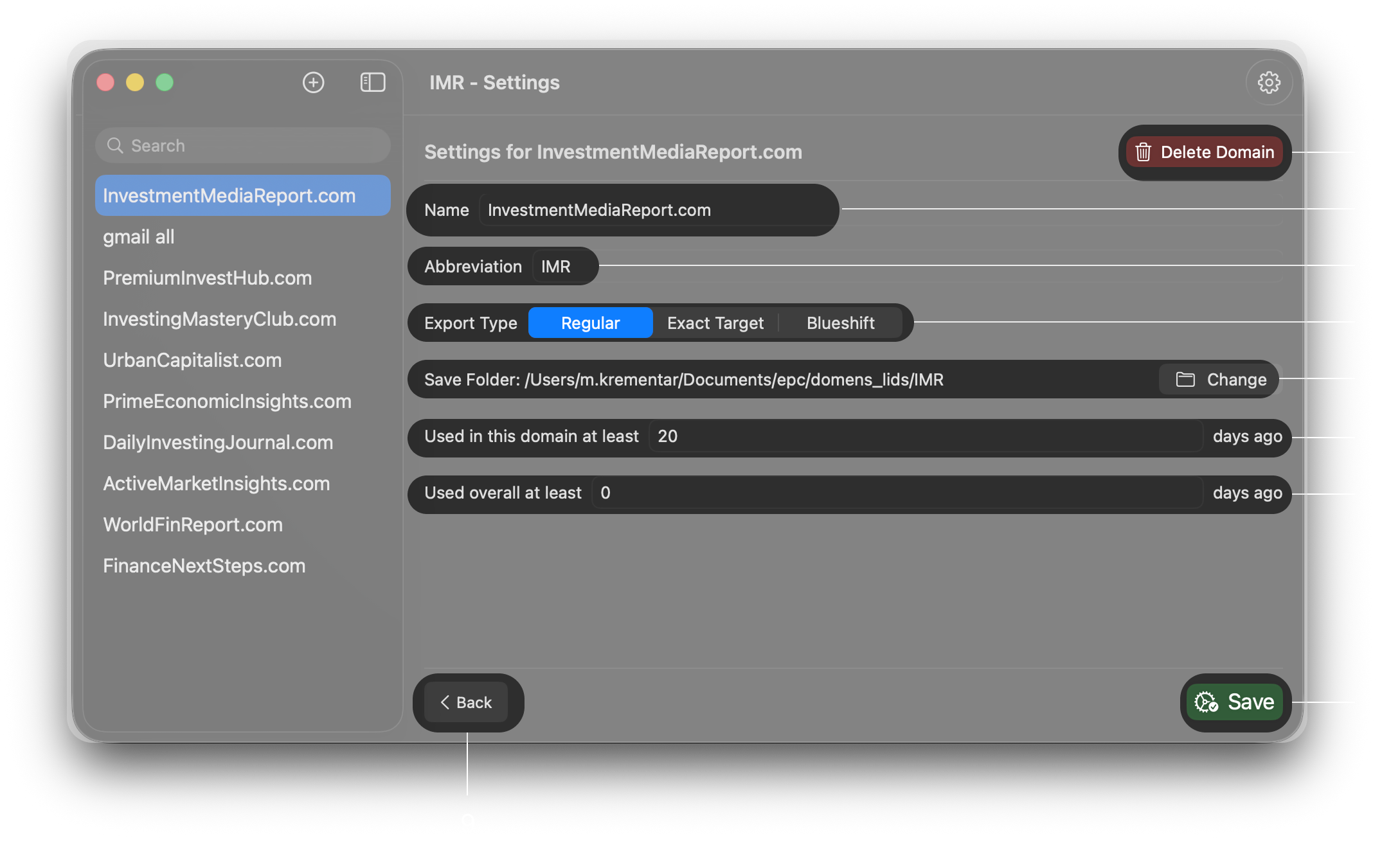 Organize your tags into separate domains. Set up export rules, format and save folder